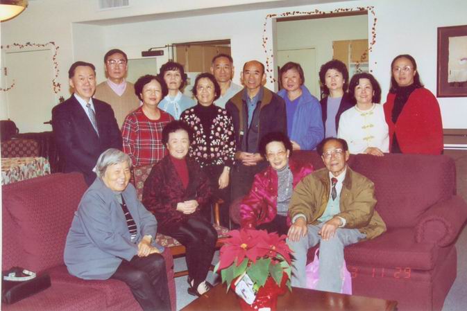 站立者(左起):朱兆元、许以盛、徐芝、徐芸、朱兆荣、聂崇钰、聂崇钊、聂崇钊夫人严芳、聂崇钰夫人 Anna Lin、郑涵乐(聂光琼女儿)、朱兆元夫人吴常礼。