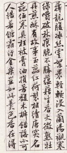 给我印象颇深的一件事是,有次蜕老在我家小酌;母亲端上一碗双冬(冬菇冬笋)菜心。蜕老赞美之余,说起当年陈夔龙在家设宴,其中一道菜是用晚香玉和竹荪烧成羹,色香味俱佳;在座的陈三立当即为此菜取名“玉胎羹”,并约同席者赋诗。蜕老说毕,父亲说他也记得有此事,可能是在陈夔龙的《花近楼诗存》中读到过相关诗作。可惜我家旧藏的陈夔龙、陈三立等遗老的线装诗集都在“文革”中被抄没,现在手头只有一部蜕老赠我的《瞿文慎公诗选遗墨》。这次为写文章,翻检之下,果然读到一首题为《玉胎羹》的七古。诗前小序云:“庸庵席中以晚香玉和竹荪为羹,味香色俱胜。散原名以‘玉胎’,约同人赋诗。”(陈夔龙号“庸庵”,陈三立号“散原”。)这是一首文采斐然的咏物诗,下面聊引几句——