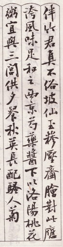……岂如此羹色香在,得伴竹君真不俗。坡仙玉穇压齑脍,对此应夸风味足。和之西京芍药酱,下以洛阳桃花粥。宜与三闾供夕餐,秋英长配骚人菊。