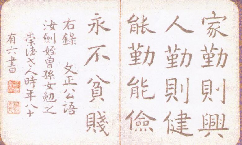 家俭则兴,人勤则健,能勤能俭,永不贫贱! 曾国藩把全家人召集起来,将他为家人制订的“功课单”当众宣读,每人发给一份。下面将他写给女眷的一份抄录如下,以供参考。 早饭后:做小菜、点心、酒、酱之属(食事)。己午刻:纺花或绩麻(衣事),中饭后:做鍼黹、刺绣之类(细工)。西刻:过二更后,做男鞋、女鞋、或缝衣(粗工)。吾家男子,于看、读、写、作四字,缺一不可;妇女子衣、食、粗、细四字,缺一不可。吾已教训数年,总未做出一定规矩,自后每日立定功课,吾亲自验工。食事每日验一次;衣事三日验一次,纺者验线子,绩者验鹅蛋(即纱绽);细工五月验一次;每月须做成男鞋一双,女鞋不验。右验功课单,谕儿媳、侄妇、满女知之。甥妇到日,亦照此遵行。 |