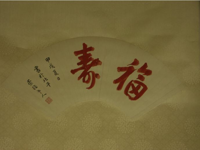 【编者按】这个扇面是崇德老人1934年北平之行期间所书,当时给了聂其纯。在北平期间崇德老人受燕京大学校长司徒雷登先生的邀请到燕京大学做客(崇德老人的孙辈有 十余人是燕京大学的学生),宾主相谈甚为融洽,崇德老人过后赠给司徒雷登先生一幅自己书写的条幅。司徒雷登先生极为珍视, 装裱后一直挂在临湖轩(燕大内校务长寓)客厅之中,随时观摩。太平洋战争爆发后,司徒雷登先生被日军囚禁了三年多,临湖轩遭窃,此条幅亦不知所踪。 1947年9月,聂其纯的次子,燕京大学毕业并留法的中华民国外交烈士卓还来,连同另八位外交烈士的遗骨归葬南京菊花台。国民政府外交部长王世杰为撰《九烈士殉难事略》,而司徒大使独为他所钟爱的学生卓还来撰写了诔文,并亲口对聂其纯说,卓还来是其最好的学生。聂其纯得知司徒当年所得崇德老人墨宝遗落,并极为痛惜,即检视家中留存之母亲遗墨,挑选了这幅崇德老人北上期间所书“福寿”扇面赠给了司徒雷登先生。 1949年后,司徒雷登返回了美国,这幅作品也被带到了美国。1962年9月19日,司徒雷登先生去世。2006年8月,这幅见证司徒雷登与聂氏家族交往的作品,由司徒雷登的私人秘书傅泾波的子女们,捐赠给了杭州司徒雷登故居,并随其它司徒雷登先生的遗物,作为基本陈列,在故居公开展出。