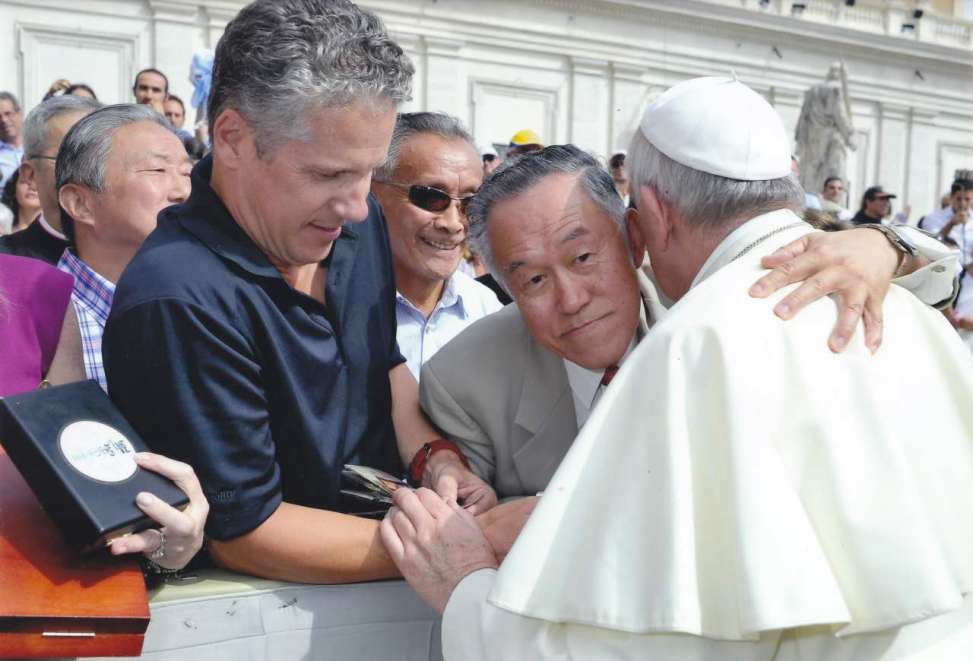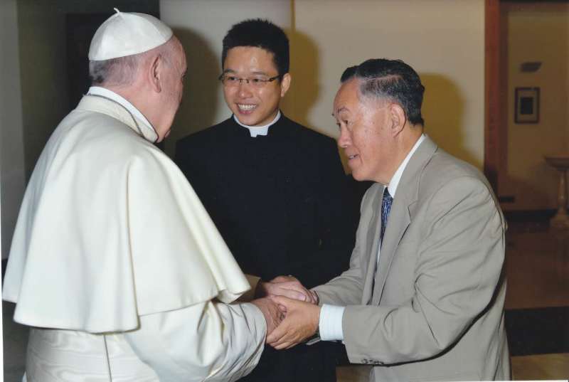 【编者按】 為紀念天主教1955年中國上海教難甲子紀念,朱兆元连同30多位原籍上海的教友,從台灣、美國及其他地方前往羅馬朝聖,9月15日,一行人受到了教皇方济各的接见。 以下是几张朱兆元受到教皇接见时的照片。