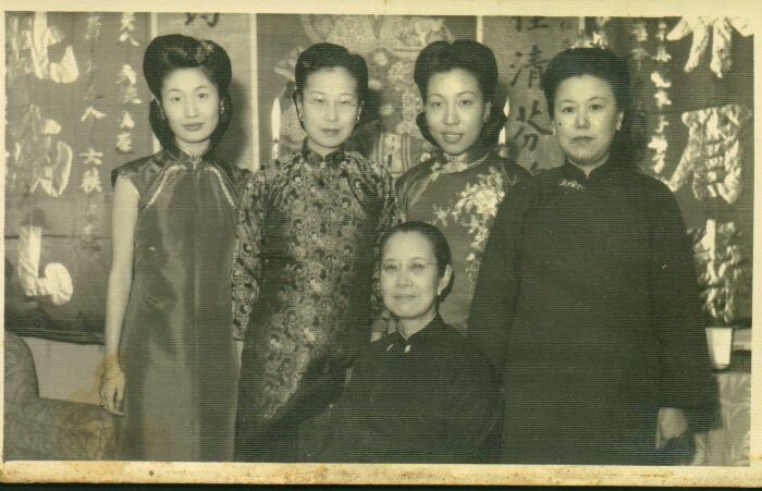 左起:张心漪、蒯世京的小姐姐蒯卓伦、聂光明、蒯世京大姐姐蒯卓英。前坐者为蒯世京的母亲。