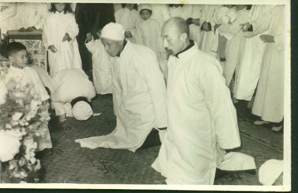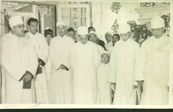 亲友在灵前行礼。左跪者为卓宣谋,右跪者为张东荪(其夫人为曾文正公二弟曾国潢的孙女)。