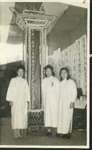 亲属向遗体告别。当时的习俗,棺材内须衬满丝棉。自左至右:聂其焜、聂其贤夫人、聂其焌夫人颜宝航、(左四待定)、聂其昌、聂其德。